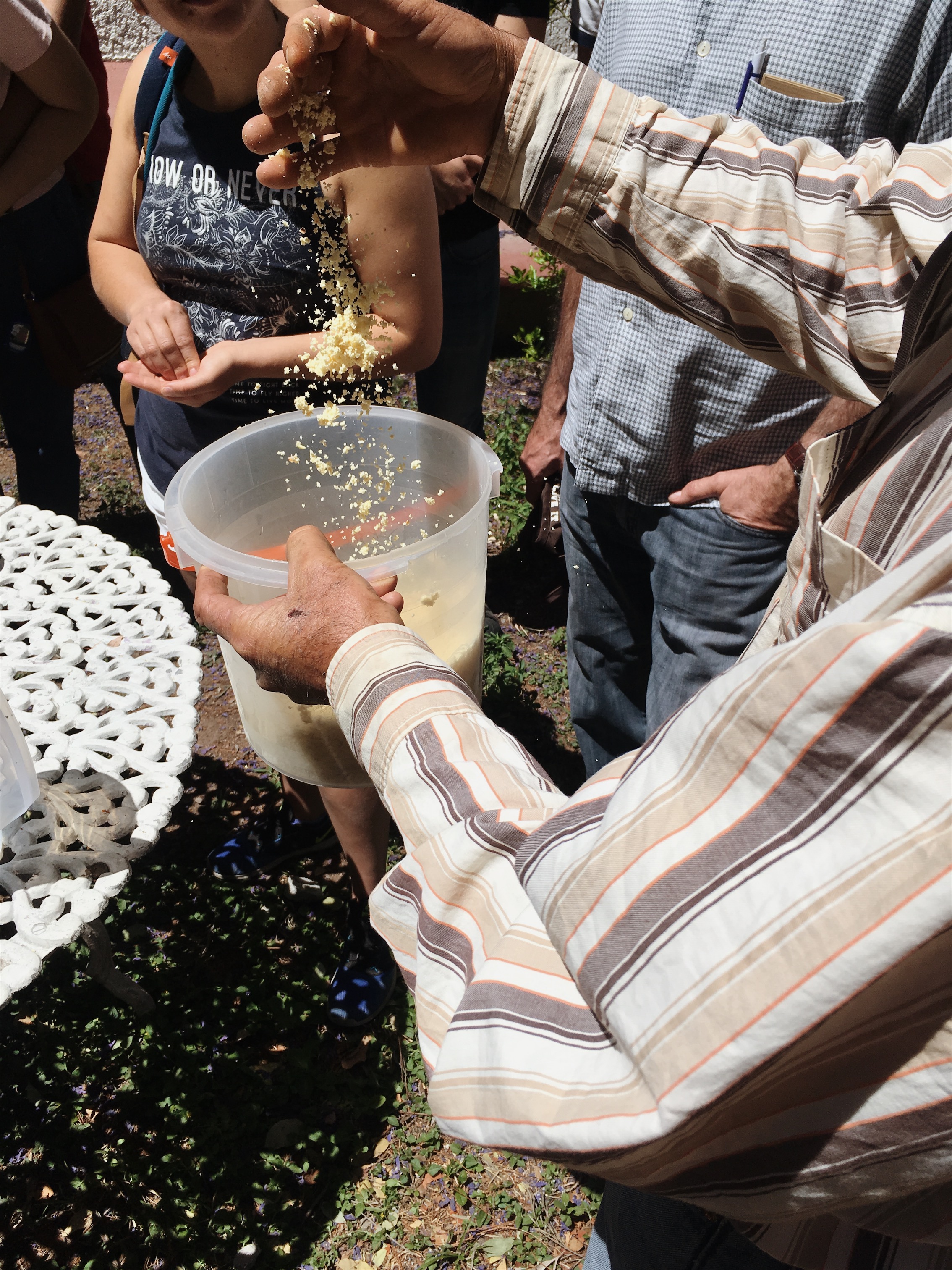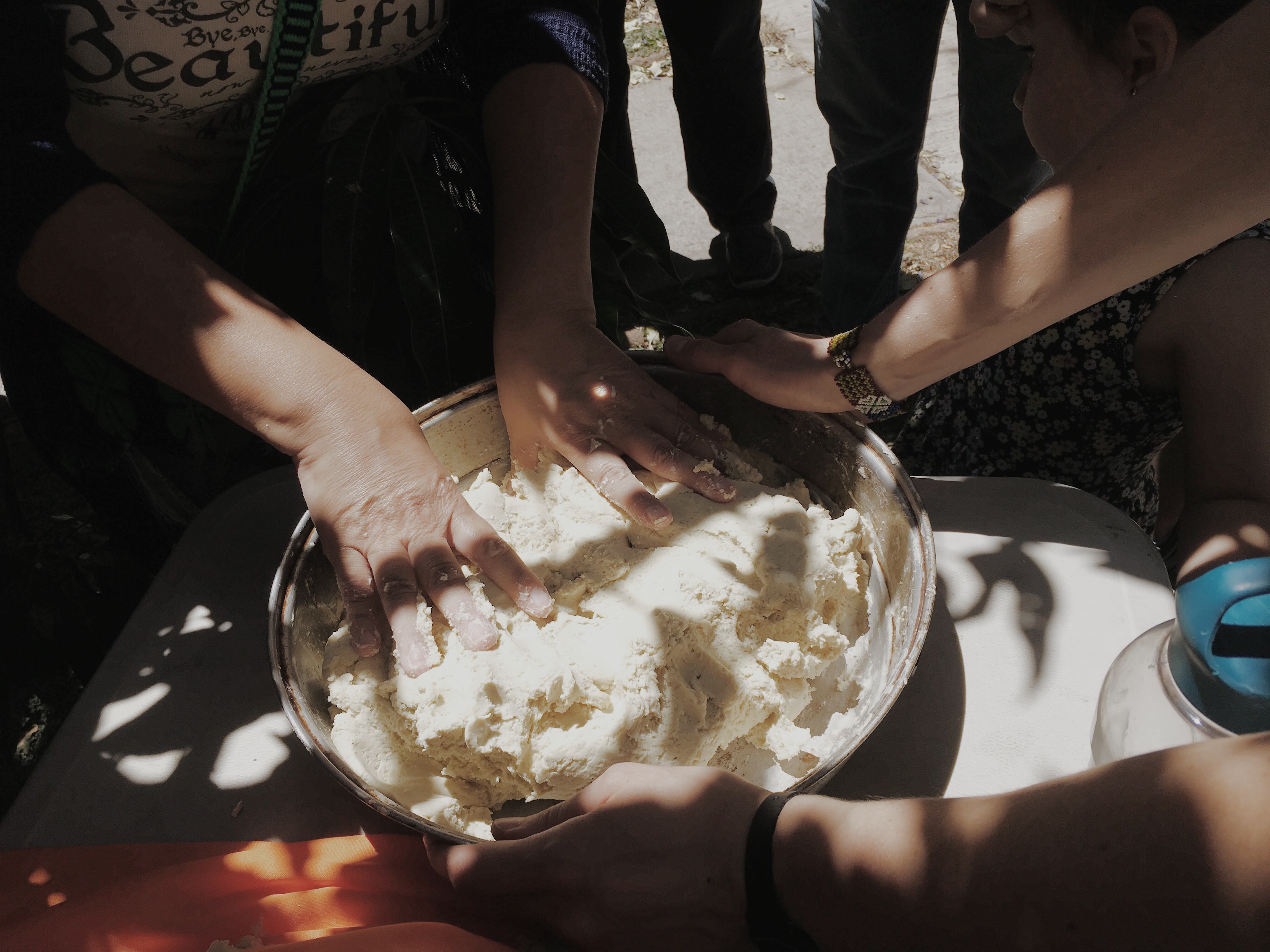 Next, El Paye explained the nixtamalization process, which brings out the corn’s nutrients and makes it edible. In this process, the corn is boiled with calcium hydroxide (also known as cal, or slaked lime). As El Paye rattled off his nixtamalization process, he was immediately bombarded with questions by the group. “How long should I boil the solution? When should you add the corn? What type of pot should I use?” El Paye did his best to answer everyone’s questions, clarifying that everyone does things a little differently. His final answer was: “tenemos que aprender a ver y sentir lo que estamos haciendo. Si no, no sabe rico.” “We have to learn how to see and feel what we’re doing. If not, it won’t taste good.”